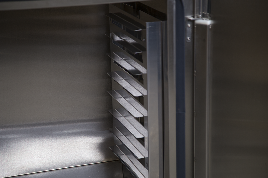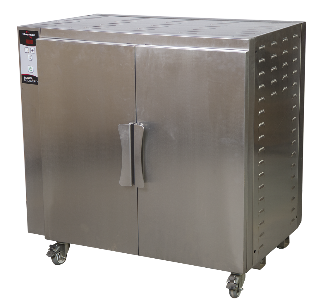 Capacidad y compatibilidad: Puede albergar hasta 160 panes distribuidos en 8 bandejas, siendo perfectamente modular con el Horno Turbo Eléctrico Skymsen Discovery de 4 bandejas, que permite hornear hasta 80 panes por ciclo.