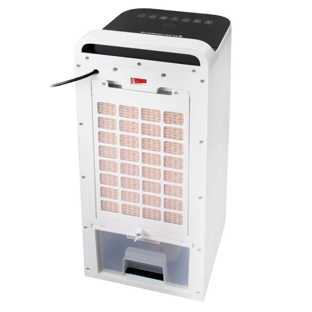 Con un volumen de aire que alcanza los 600 m³/h, el equipo asegura una circulación continua y efectiva del aire, mientras su depósito de agua de 6 litros favorece la función de humidificación. El panel de control tipo display touch, el control remoto, la función swing (oscilación) y el timer permiten una personalización avanzada de su funcionamiento.