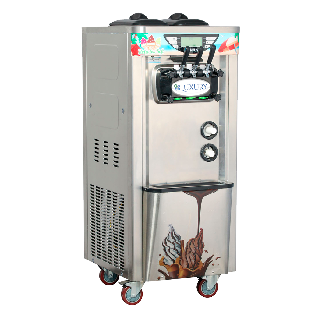 La FABRICADORA DE HELADOS SOFT 30 LITROS HORA PRO LUXURY es la solución profesional que tu negocio de heladería necesita para ofrecer un helado soft cremoso y consistente. Diseñada para un rendimiento continuo de hasta 30 L/hora, esta máquina combina tecnología de vanguardia, facilidad de uso y limpieza automática para maximizar tus ventas y minimizar el tiempo de mantenimiento.