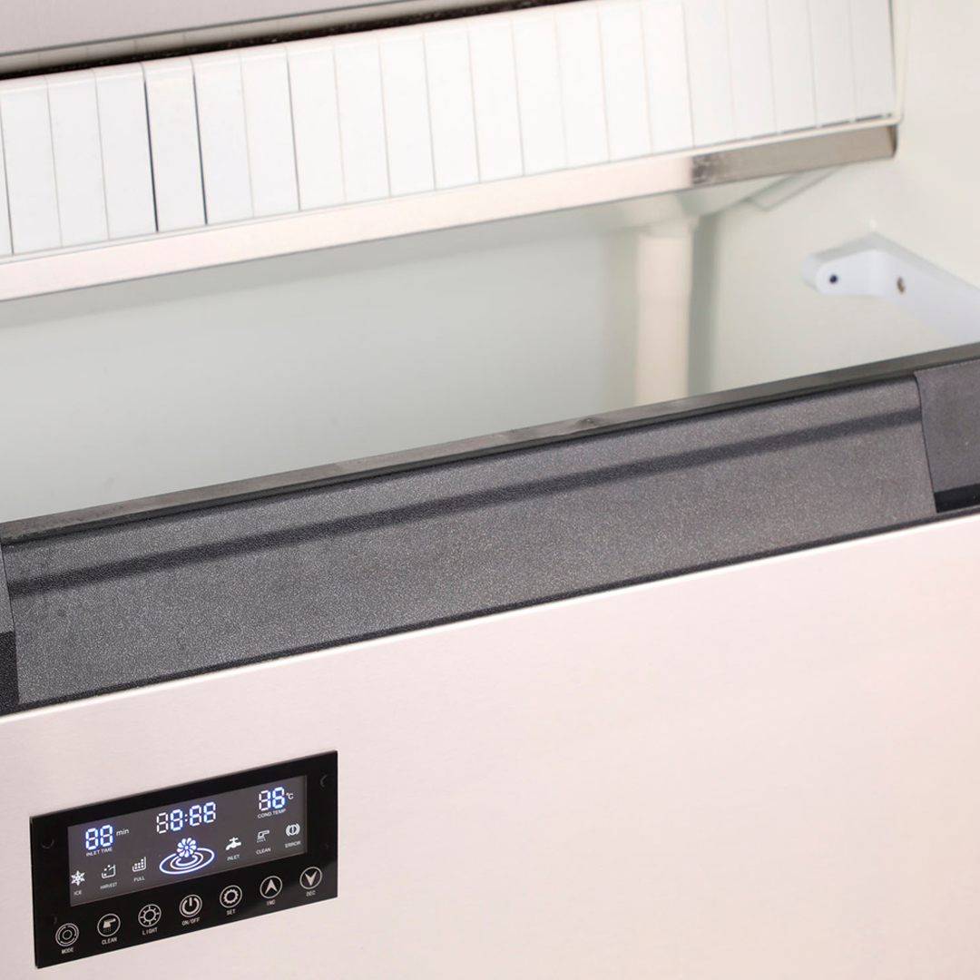 Alta capacidad de producción: hasta 80 kg de hielo/24 h, cubriendo picos de demanda en cafeterías, bares y restaurantes.