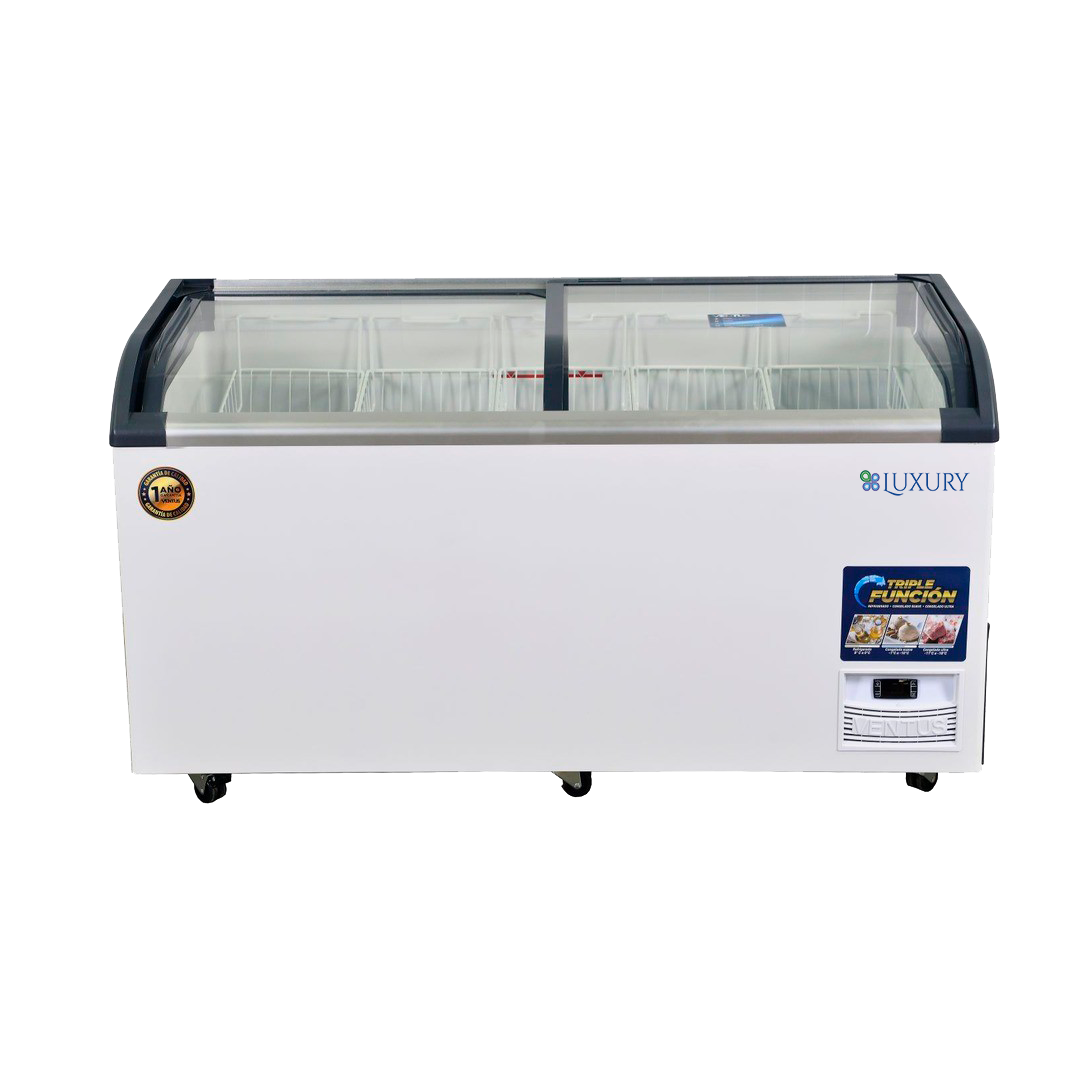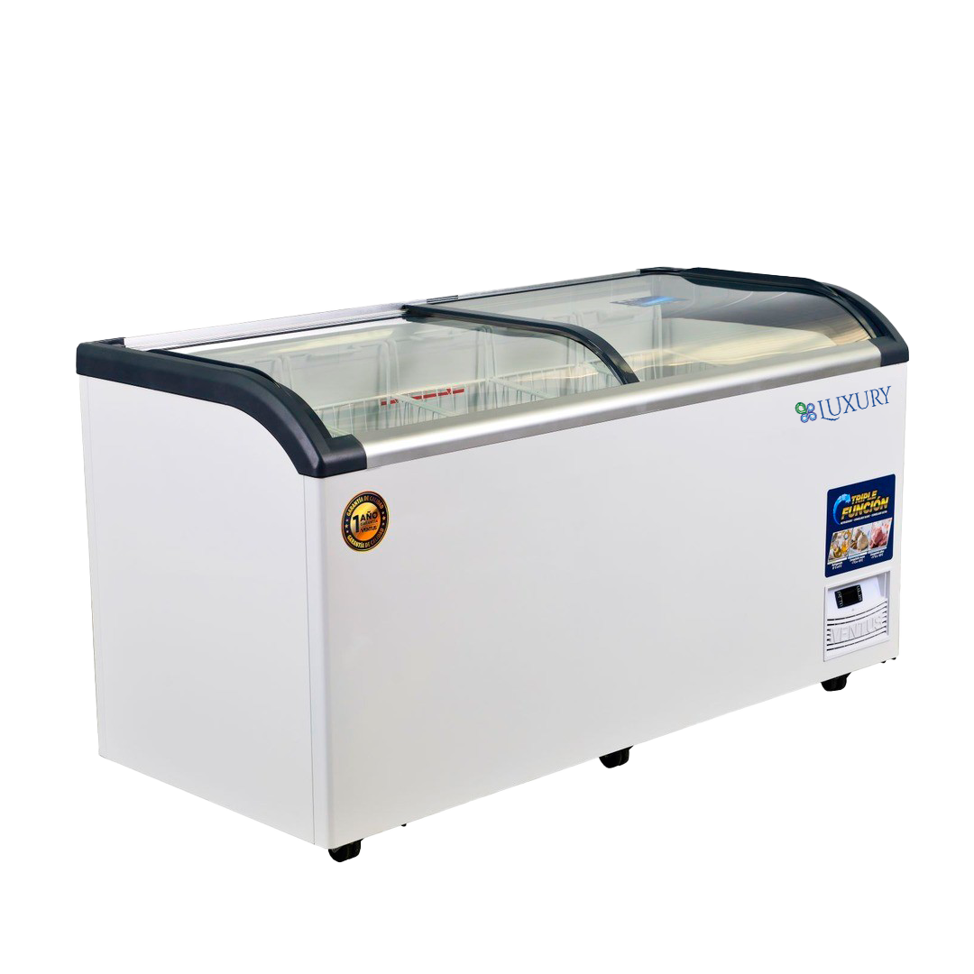 El Freezer Tapa Vidrio 520 Lts. Luxury es la solución ideal para comercios que requieren conservar y exhibir productos refrigerados o congelados con eficiencia y estilo. Diseñado para uso comercial e industrial, este modelo ofrece una triple función de frío: refrigerado, congelado suave y congelado ultra. Con una capacidad bruta de 520 litros y neta de 445 litros, combina funcionalidad, seguridad y bajo consumo energético, siendo perfecto para supermercados, heladerías, minimarkets y otros espacios donde el frío confiable es clave para operar.