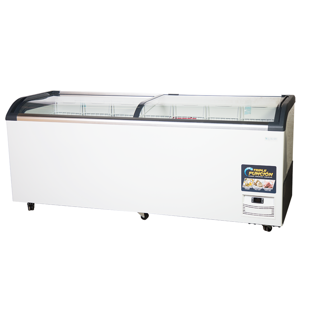 El Freezer Tapa Vidrio 720 Lts. Luxury es la solución ideal para comercios que requieren conservar y exhibir productos refrigerados o congelados con eficiencia y estilo. Diseñado para uso comercial e industrial, este modelo ofrece una triple función de frío: refrigerado, congelado suave y congelado ultra. Con una capacidad bruta de 720 litros y neta de 495 litros, combina funcionalidad, seguridad y bajo consumo energético, siendo perfecto para supermercados, heladerías, minimarkets y otros espacios donde el frío confiable es clave para operar.