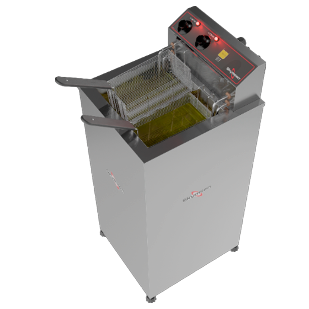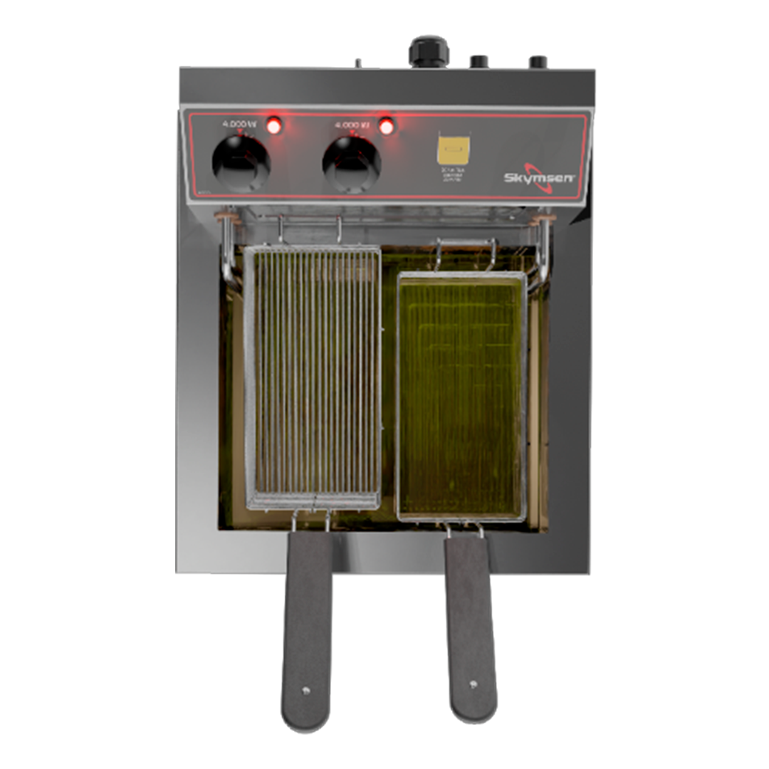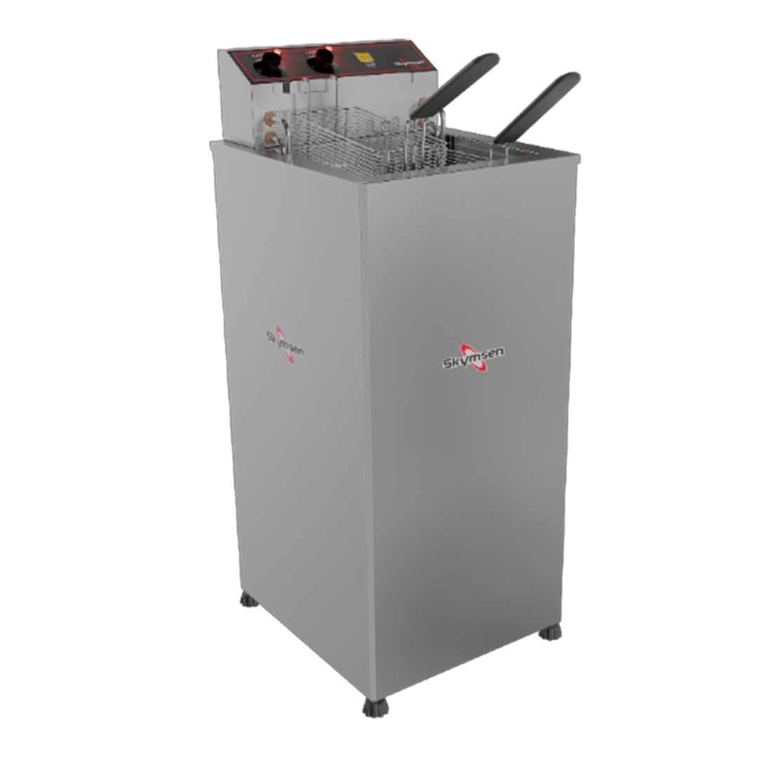 Con un diseño compacto y modular, la freidora eléctrica Skymsen permite integrarse fácilmente a cualquier espacio de trabajo, asegurando alta productividad incluso en áreas reducidas.