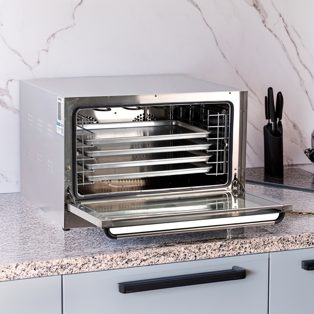El Horno Convector Eléctrico con Humidificador VHC-8A es la solución profesional definitiva para comercios, panaderías, pastelerías y cadenas de food service que buscan eficiencia, uniformidad y máxima calidad en sus procesos de cocción. Fabricado íntegramente en acero inoxidable y equipado con tecnología avanzada, este horno está diseñado para soportar el uso intensivo del sector gastronómico.