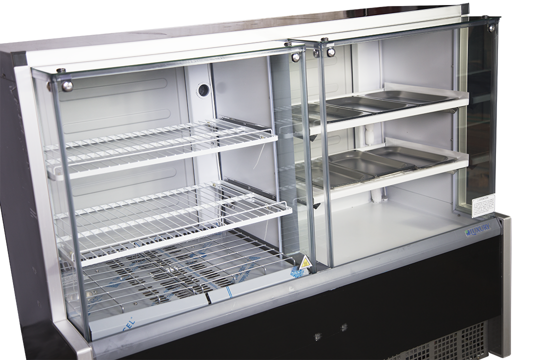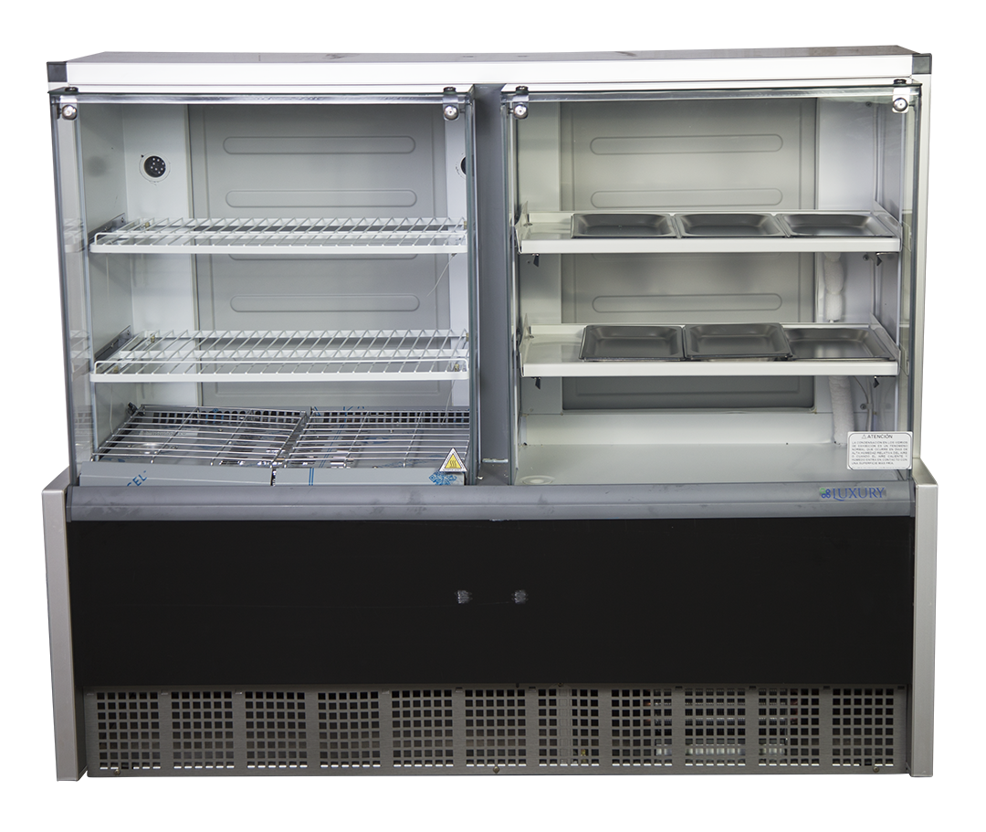 Panaderías y Pastelerías: Permite exhibir productos horneados calientes y bebidas frías en un solo equipo.