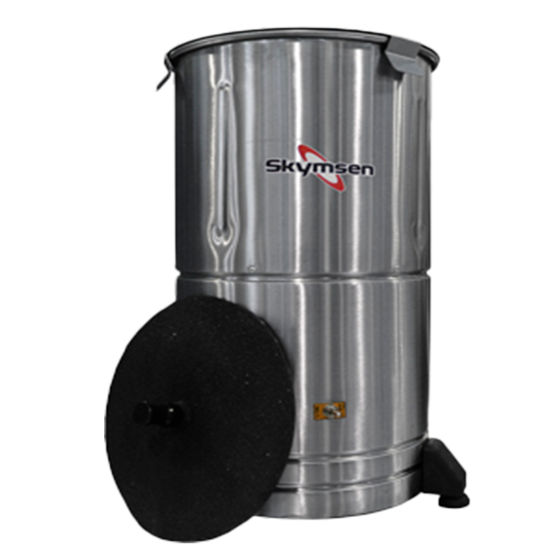 El uso de acero inoxidable AISI 304 en todo el tambor y el chasis garantiza resistencia a ácidos, grasas y agentes de limpieza.