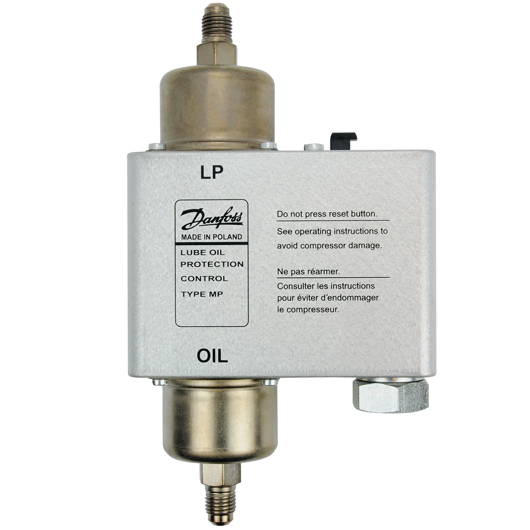El Presostato Diferencial de Aceite Danfoss MP54 está diseñado para proteger compresores en sistemas de refrigeración contra la presión insuficiente de lubricación. Funciona como un interruptor de seguridad que detiene el compresor si la diferencia entre la presión del aceite y la presión de aspiración no alcanza un valor crítico dentro de un periodo controlado, garantizando así la integridad mecánica del equipo.