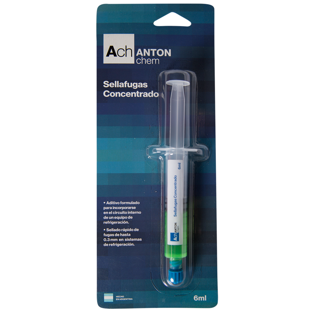 El Sellafugas Concentrado Anton Chem es un aditivo de alta tecnología diseñado para sellar de forma rápida y efectiva fugas de hasta 0.3 mm en sistemas de refrigeración y aire acondicionado. Es una solución profesional utilizada tanto en entornos residenciales como industriales, que actúa desde el interior del sistema, formando un sello hermético en los puntos de fuga sin necesidad de desmontar el equipo ni utilizar herramientas invasivas.