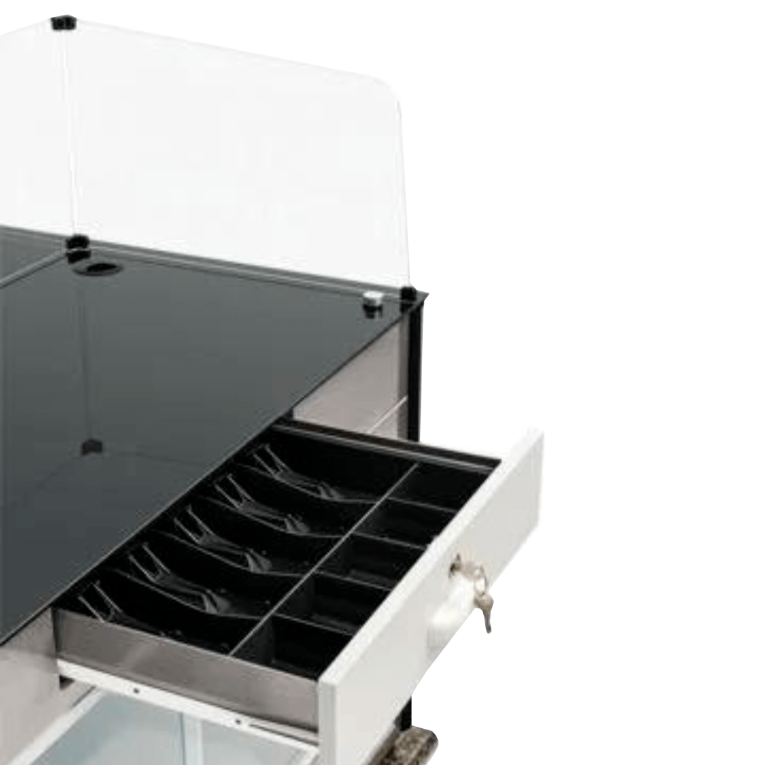 La Vitrina Caja Neutro no es solo estética, también está pensada para facilitar tu día a día. Sus puertas corredizas de vidrio templado permiten un acceso ágil al interior, ideal para entornos de alta rotación. Además, incluye un cajón con cerradura y porta billetes, brindando seguridad y practicidad en la gestión del dinero durante la jornada de trabajo.